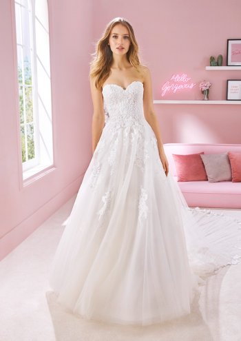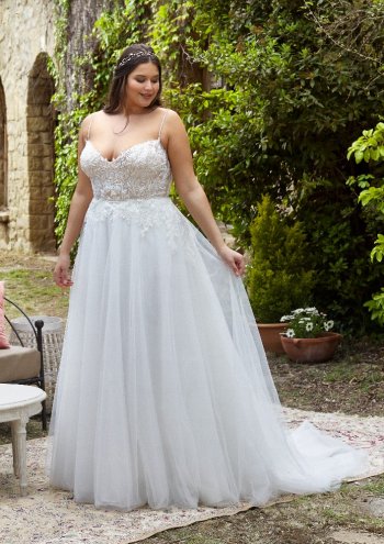 Frauen mit großer Oberweite können vom Brautkleid mit Herzausschnitt ebenfalls profitieren: Die Bögen haben eine unterstützende Wirkung.